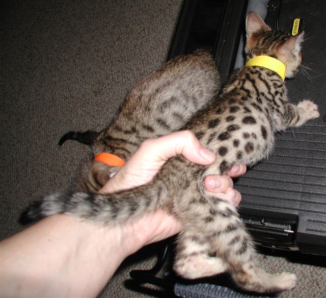 I read a short book this evening by Karen Pryor, one of the best-known animal behaviorists, about clicker training cats. It sounds really neat and I plan to try it with the bengal cats. I've seen it done in person with big cats so it can't be too difficult with the little ones. Apparently dogs take to it very well also.