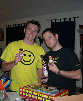 Lighting off fireworks in Florida is illegal mmmkay? At least according to the Palm Bay cop that showed up to give us a warning last night. Ron and Courtney bought a variety pack from Phantom Fireworks after signing all of the requisite waivers... you know the ones that say you acknowledge they are illegal except for very limited cases like agricultural pest management. Anything that goes boom or flies up in the air is off-limits. So that leaves you with... sparklers and... hmm... candles? Kum bah yah. At least while we were outside we got to see some of the neighbor's more impressive mortars (they obviously spent more money). Oh and we did the responsible thing and cleaned up our mess.