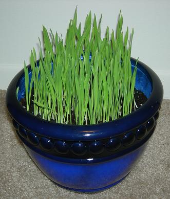 And you all thought I had no green thumb. I don't have any special place in my heart for grass, but this is supposed to be "cat grass" which makes it special. I guess. I didn't believe the packaging which said it grew in only 4 days, but there it is; the potting soil probably helped. Actually it's been 5 days but it sprouted after 3.