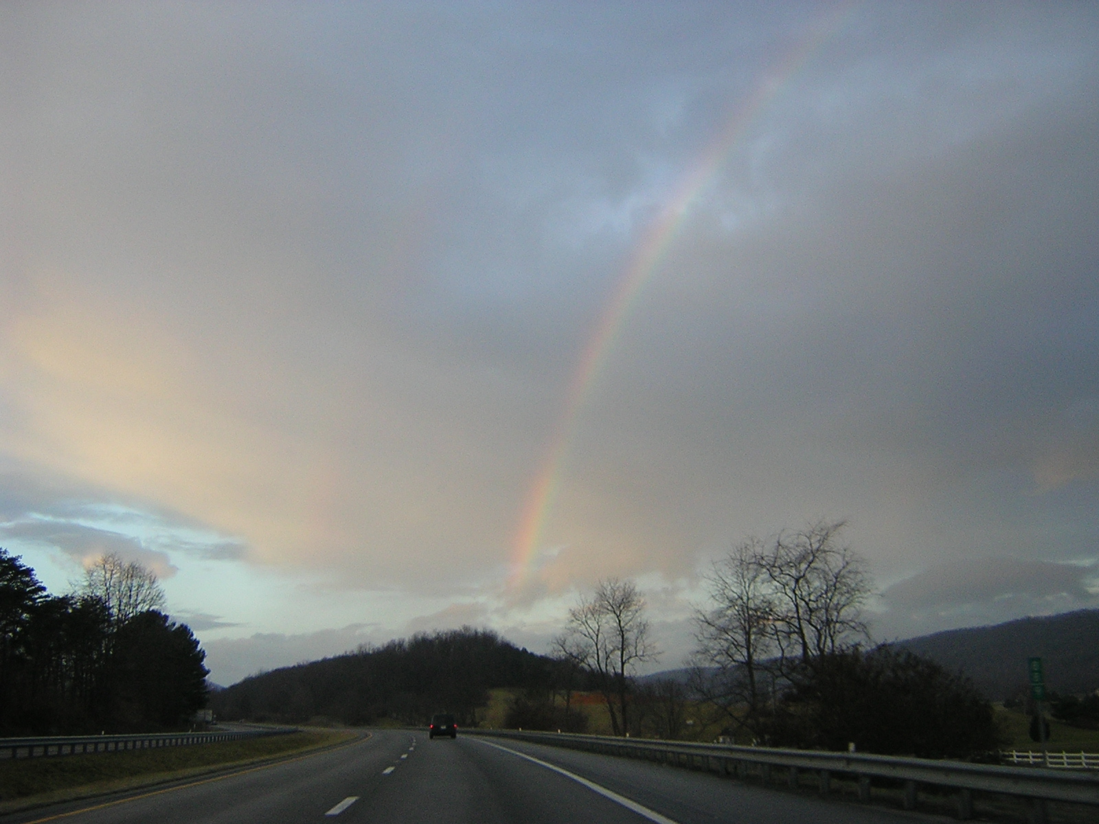 I decided to post these two pics I took on the way back from Virginia. It's pretty uncommon for me to see a rainbow, especially while driving.